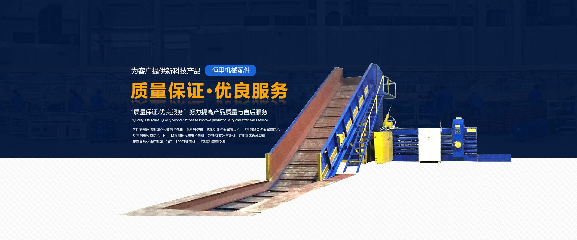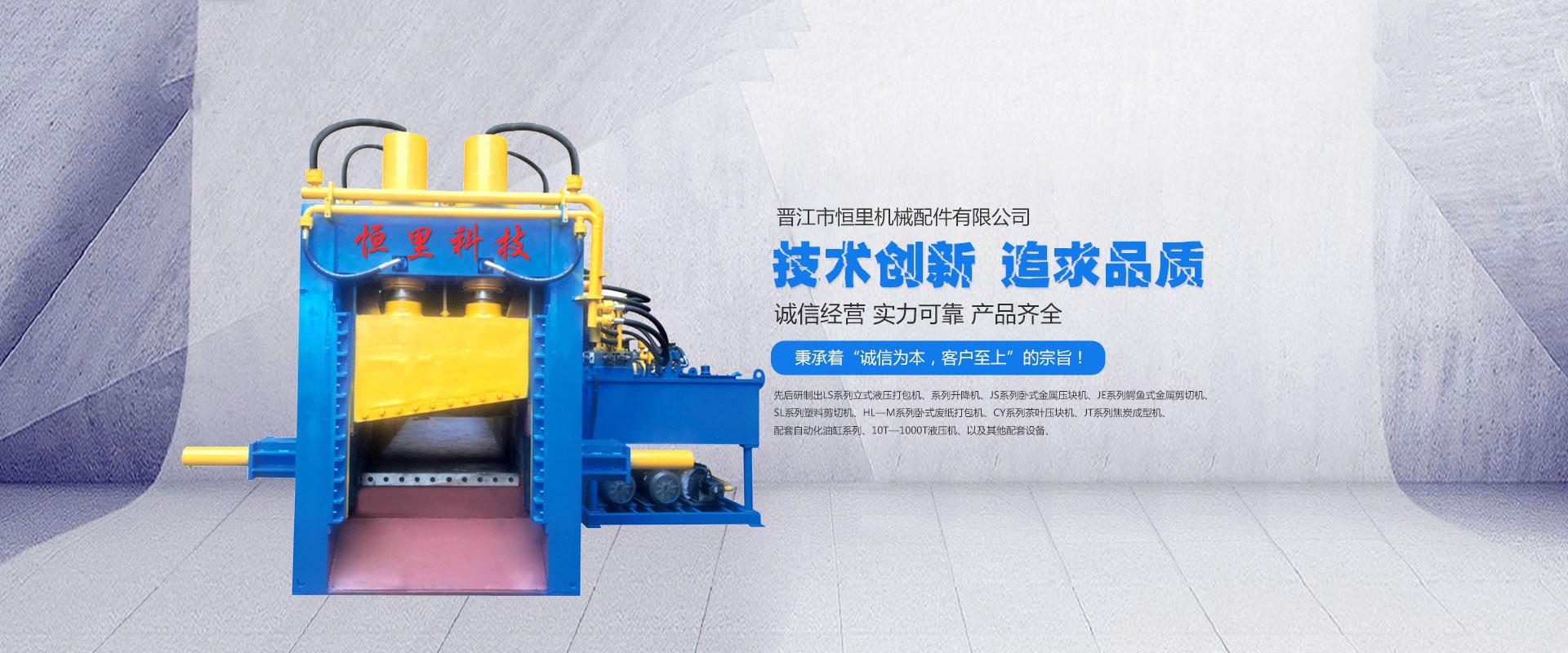 先后研制出LS系列立式液壓打包機(jī)、系列升降機(jī)、JS系列臥式金屬壓塊機(jī)、JE系列鱷魚(yú)式金屬剪切機(jī)、SL系列塑料剪切機(jī)、HL-M系列臥式廢紙打包機(jī)、CY系列茶葉壓塊機(jī)、JT系列焦炭成型機(jī)、配套自動(dòng)化油缸系列、10T-1000T液壓機(jī)、以及其他配套設(shè)備、產(chǎn)品遠(yuǎn)銷(xiāo)國(guó)內(nèi)外,深得廣大用戶(hù)的青睞。